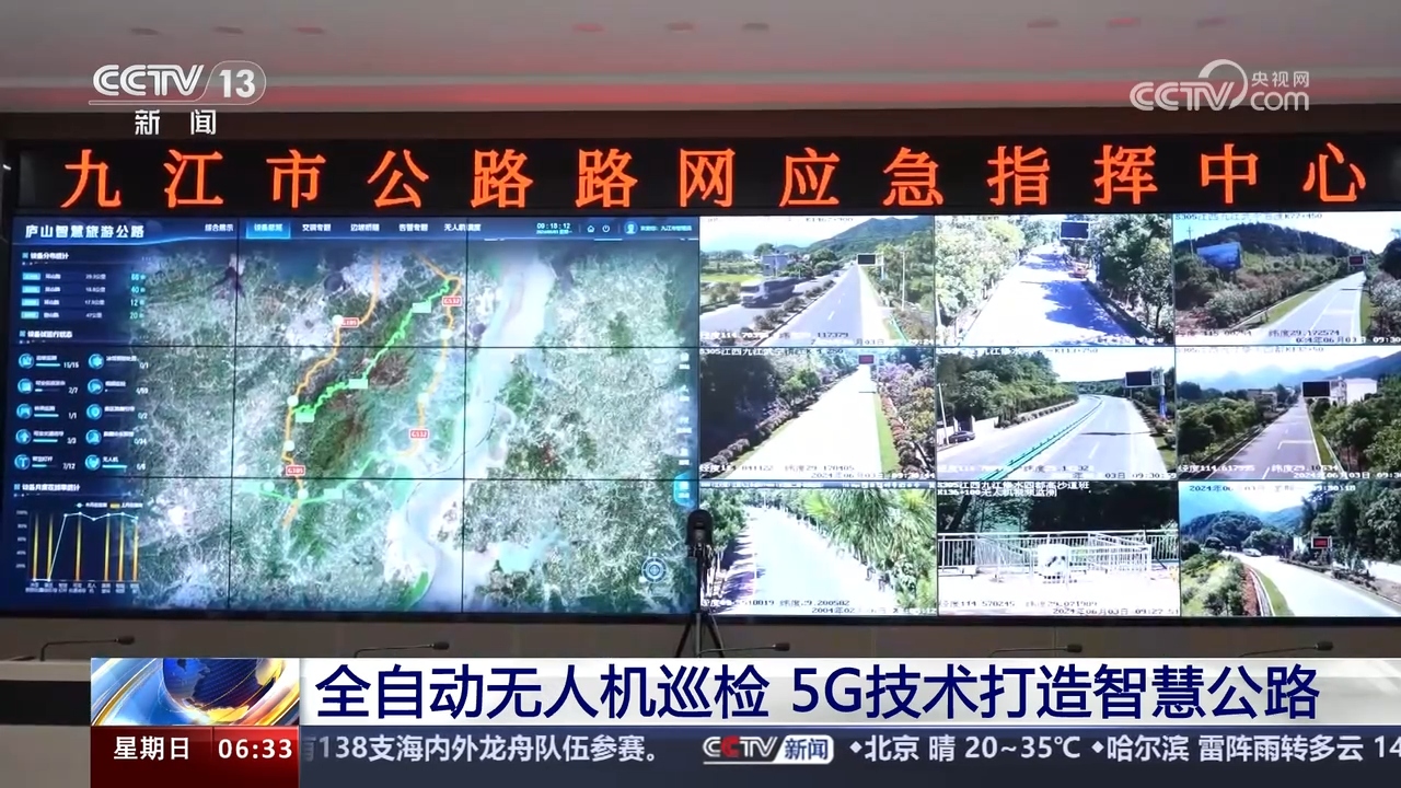 在庐山脚下的智慧公路应急指挥中心,记者看到工作人员正在通过巡航无人机观测景区各路段的交通状况,这个中心就是整个庐山公路的智慧大脑。由于庐山地势较高,雨雪冰冻和大雾天气经常影响景区交通。如今这条5G智慧公路已经配备了雾天导航设施,车辆经过的路段会自动感应开启强光。不仅如此,为了应对冬季道路积雪结冰,一些桥梁、涵洞等关键路段还装上了“电热毯”,下雪时会自动喷洒融雪剂。